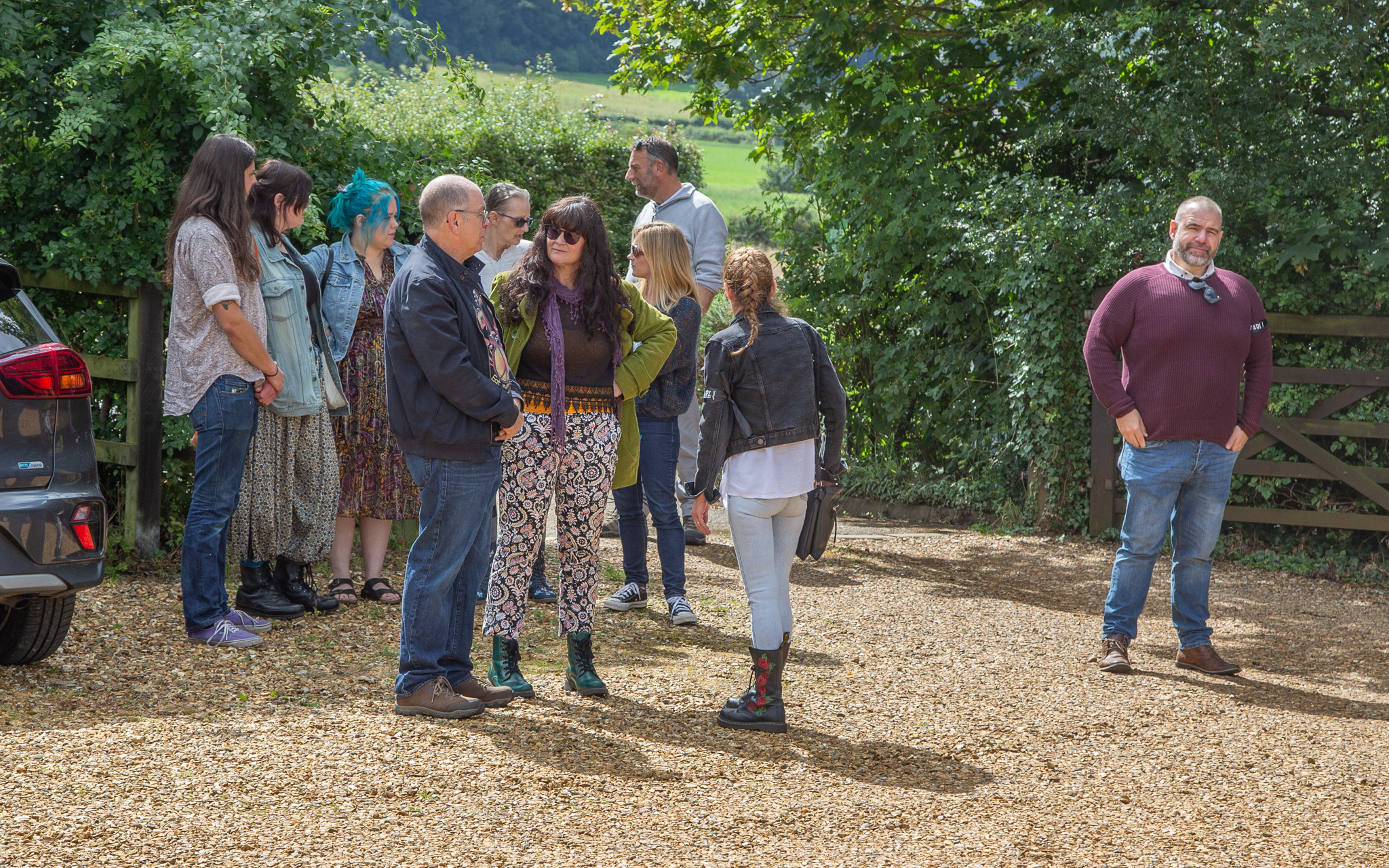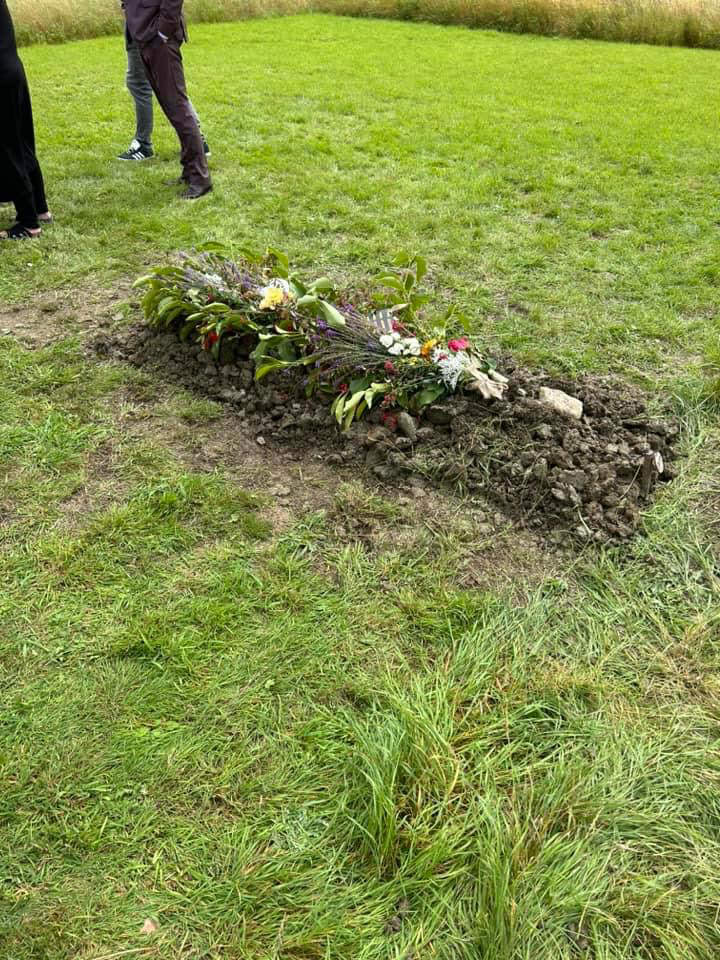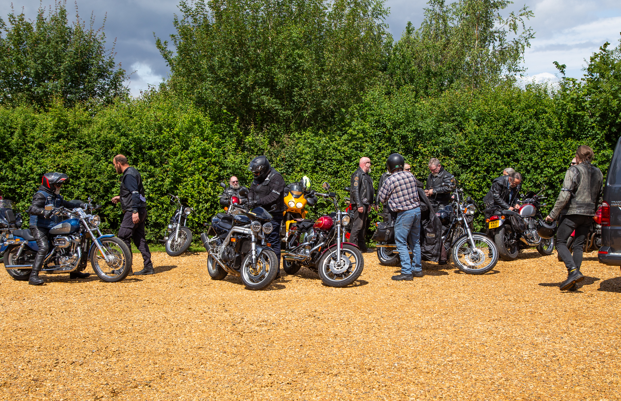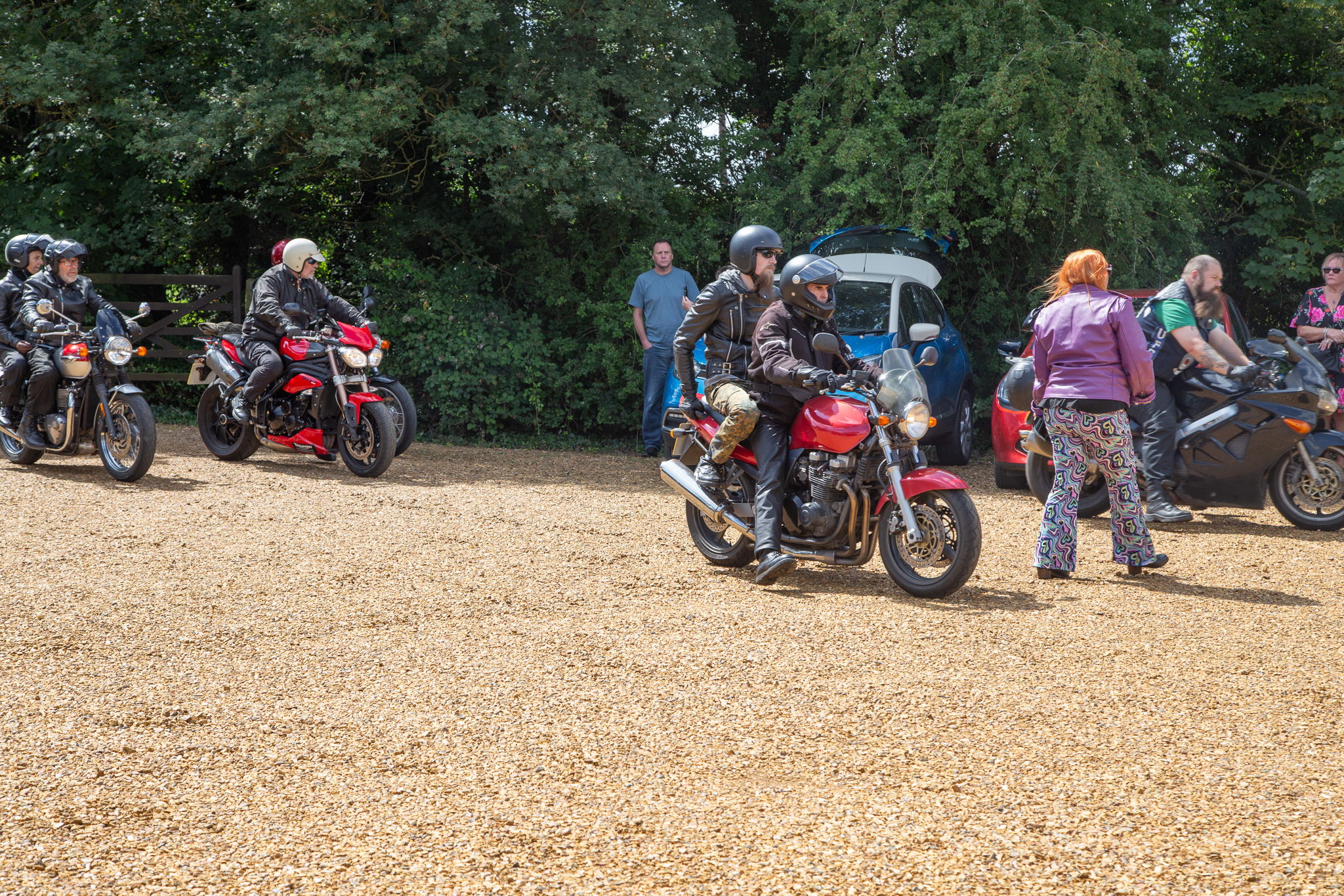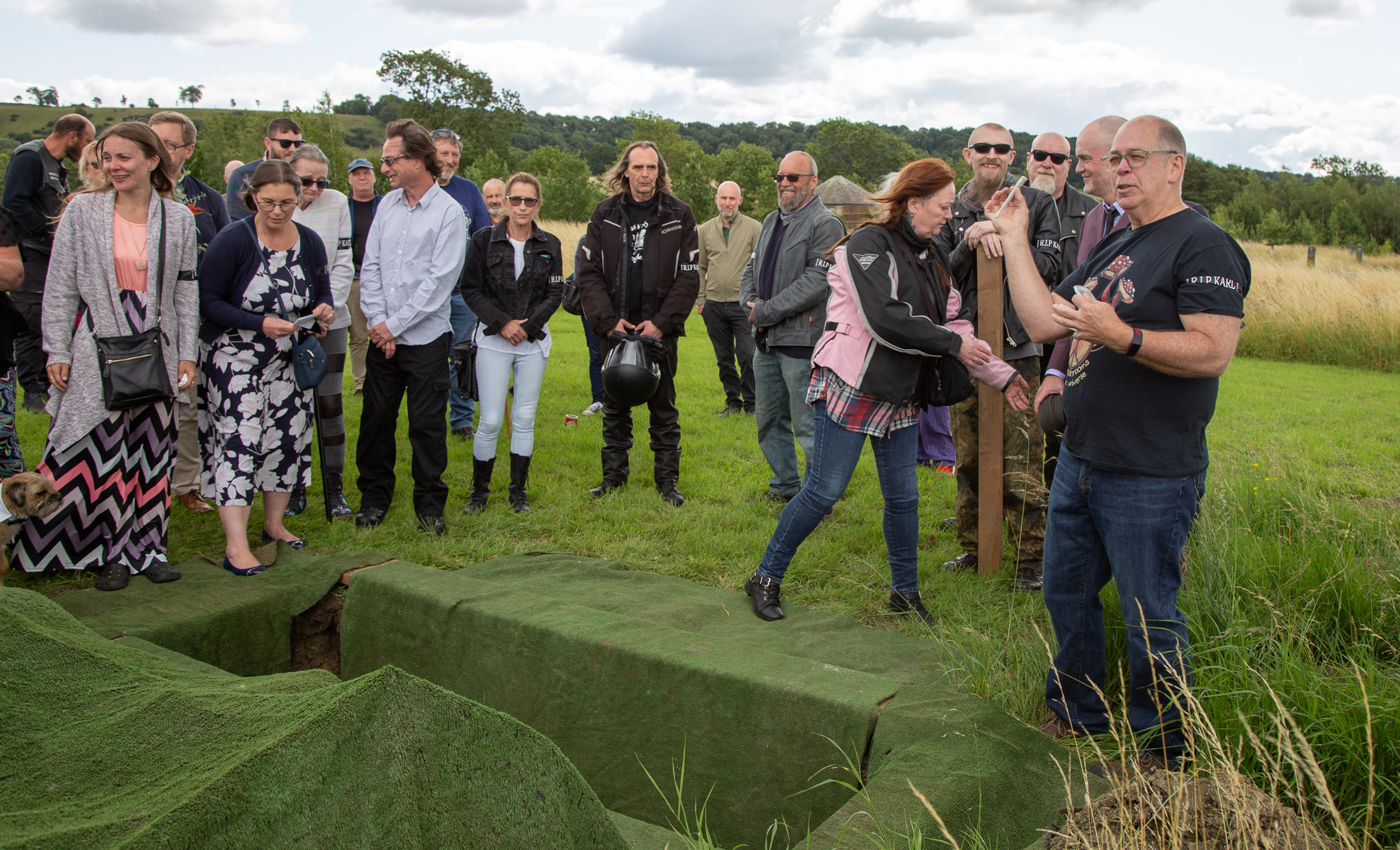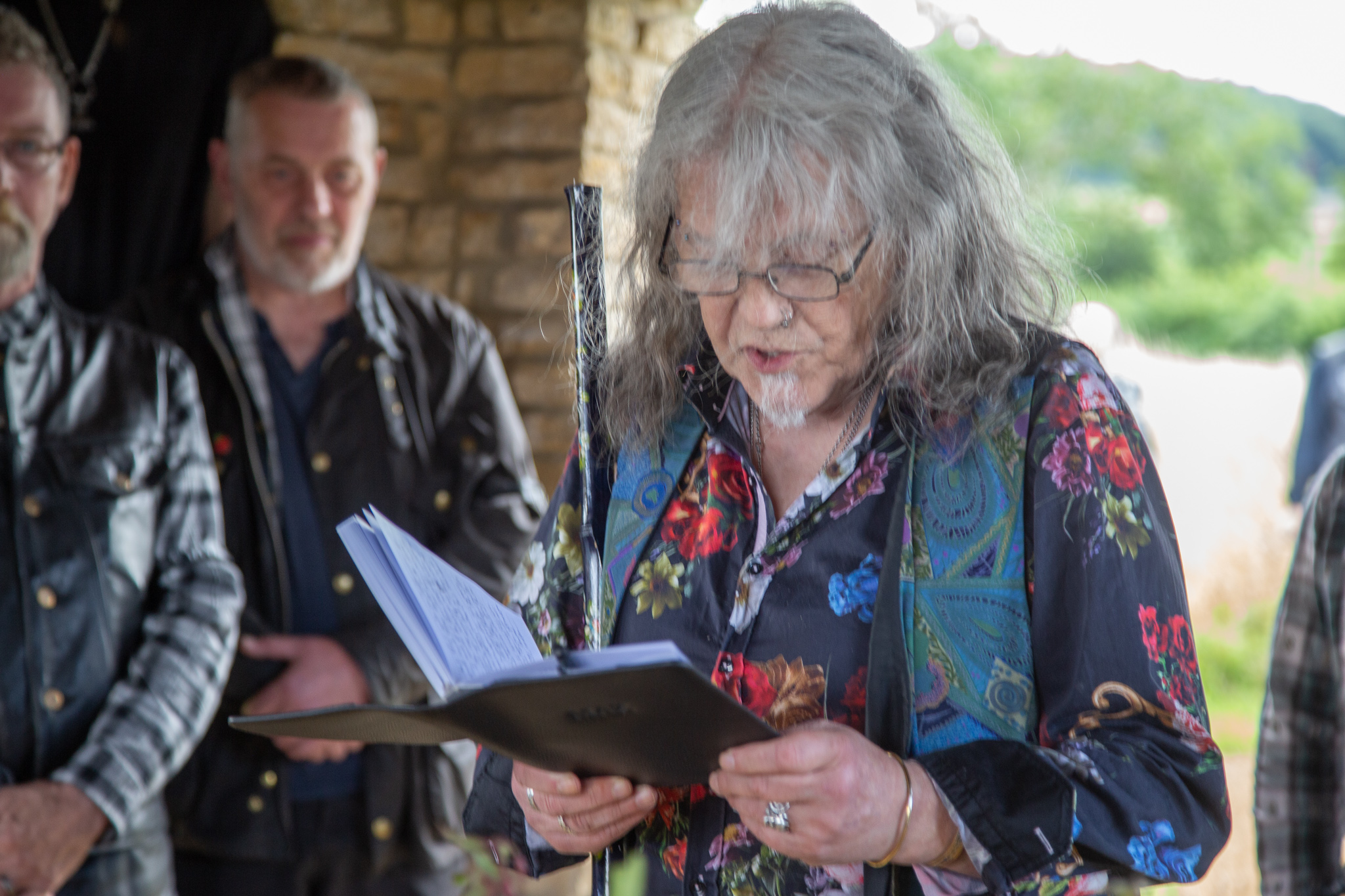 Bikers, family, and guests met up at the Musketeer pub. The bikers then set off (at high speed) to the funeral parlour. Meanwhile everyone else headed off to the funeral ground. A little while later the Hearse vehicle accompanies by the bikers arrived at the funeral ground. There were some 20-30 bikes/riders - very impressive and moving. The coffin bearers took the coffin to the round house where the funeral ceremony took place. There were many tributes from both family and from friends (some for 30-40 years). The another group of coffin bearers took the coffin to the burial ground. Unusually - after the coffin was lowered - guests were invited to cover the coffin; and finished with the final wreaths.